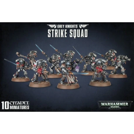 Strike Squads often form the vanguard of a Grey Knights strike force. Equipped with lighter armour than the main Terminator Squads, these veterans strike swiftly and surely, and are able to slip through gaps in the enemy line. At the onset of battle, a Grey Knights commander will invariably task one or more Strike Squads with the capture of vital locations and key objectives, deploying via fixed teleporter to ensure the rapid seizure of isolated or inaccessible locations. These Squads are essential – without their reconnaissance and preparation, the Terminator Squads would be a hammer swung blindly in the darkness.